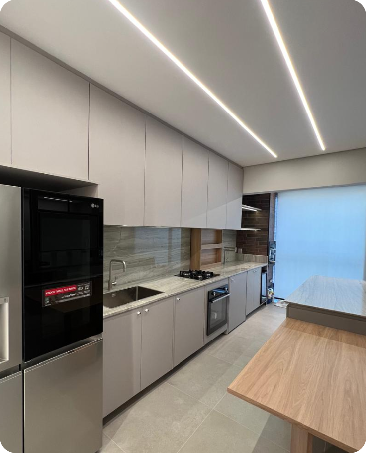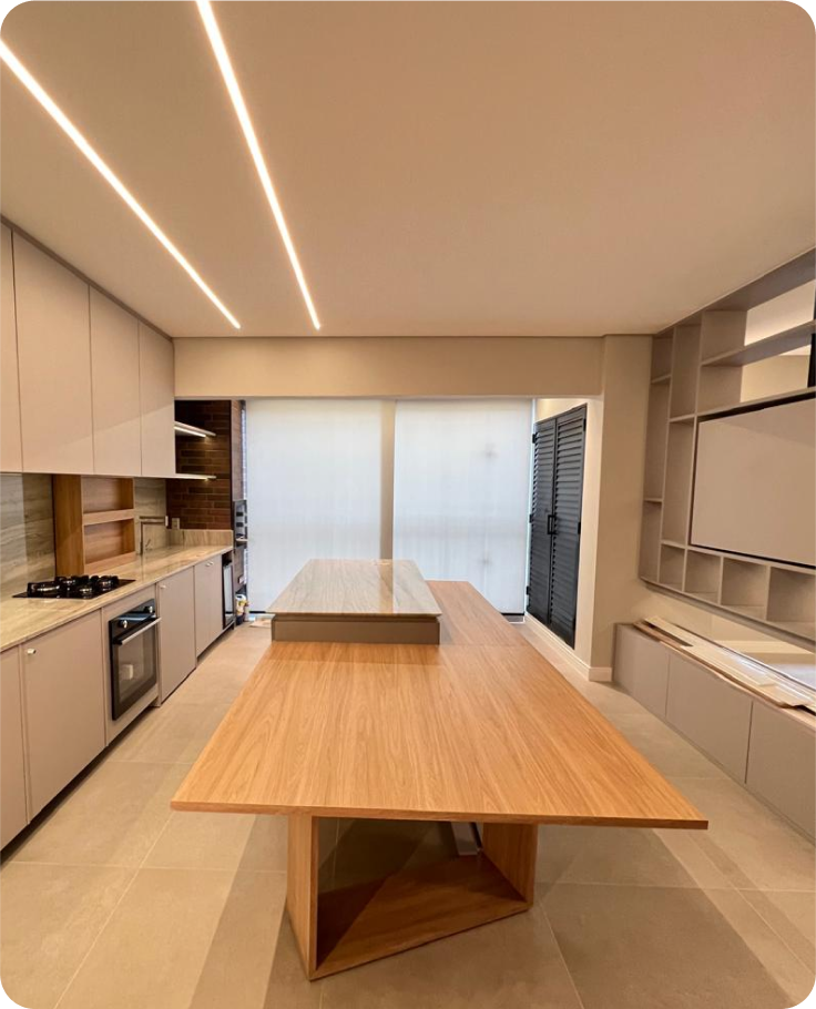Apartamento de 80m2 no SwissPark em Campinas-SP que foi todo integrado deixando a cozinha junto com a área da churrasqueira, projeto assinado pelo escritório parceiro @grassaarquitetura.
