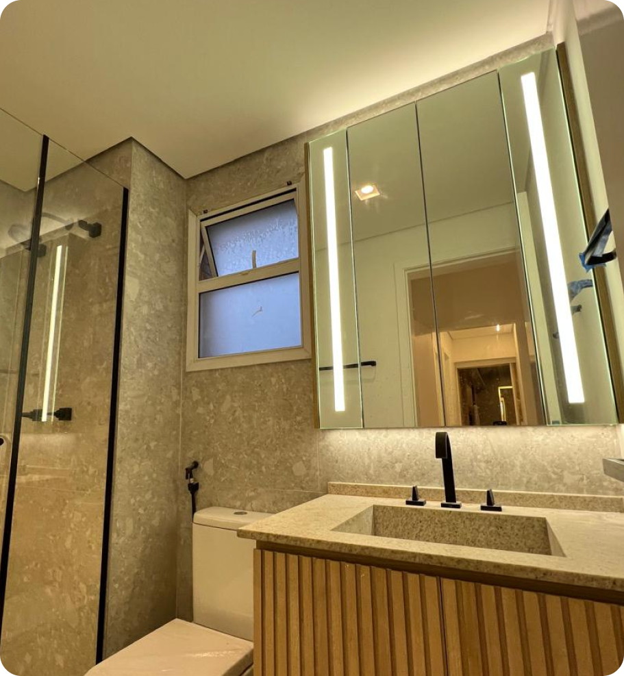 Apartamento de 105m2 na cidade de Santos-SP que teve o layout da área comum todo transformado, varanda interligada com a sala e ficou super aconchegante, projeto assinado pelo escritório parceiro @trianguloarquitetura.